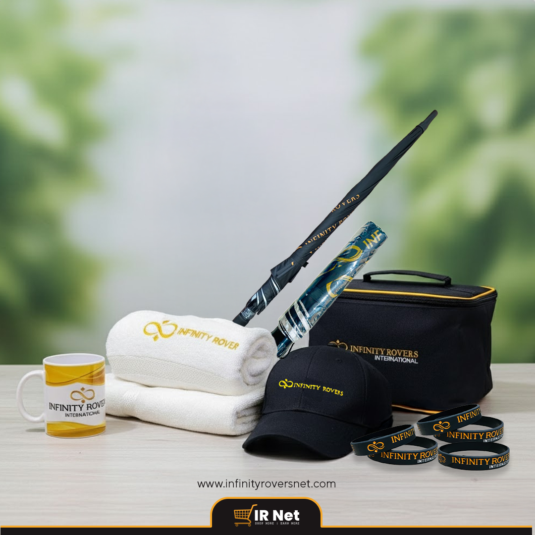 This IR Name and Logo Printed Combo Pack Include IR Gents Umbrella, IR Ladies Umbrella, IR Cap, IR Mug, IR Lunch Box, IR Towel and 5 IR Bangels.